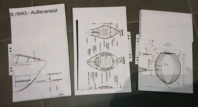 Planmappe Uboottyp VIIC U-Boot Baupläne VII C U-Boot Modellbau-Pläne/Planblätter